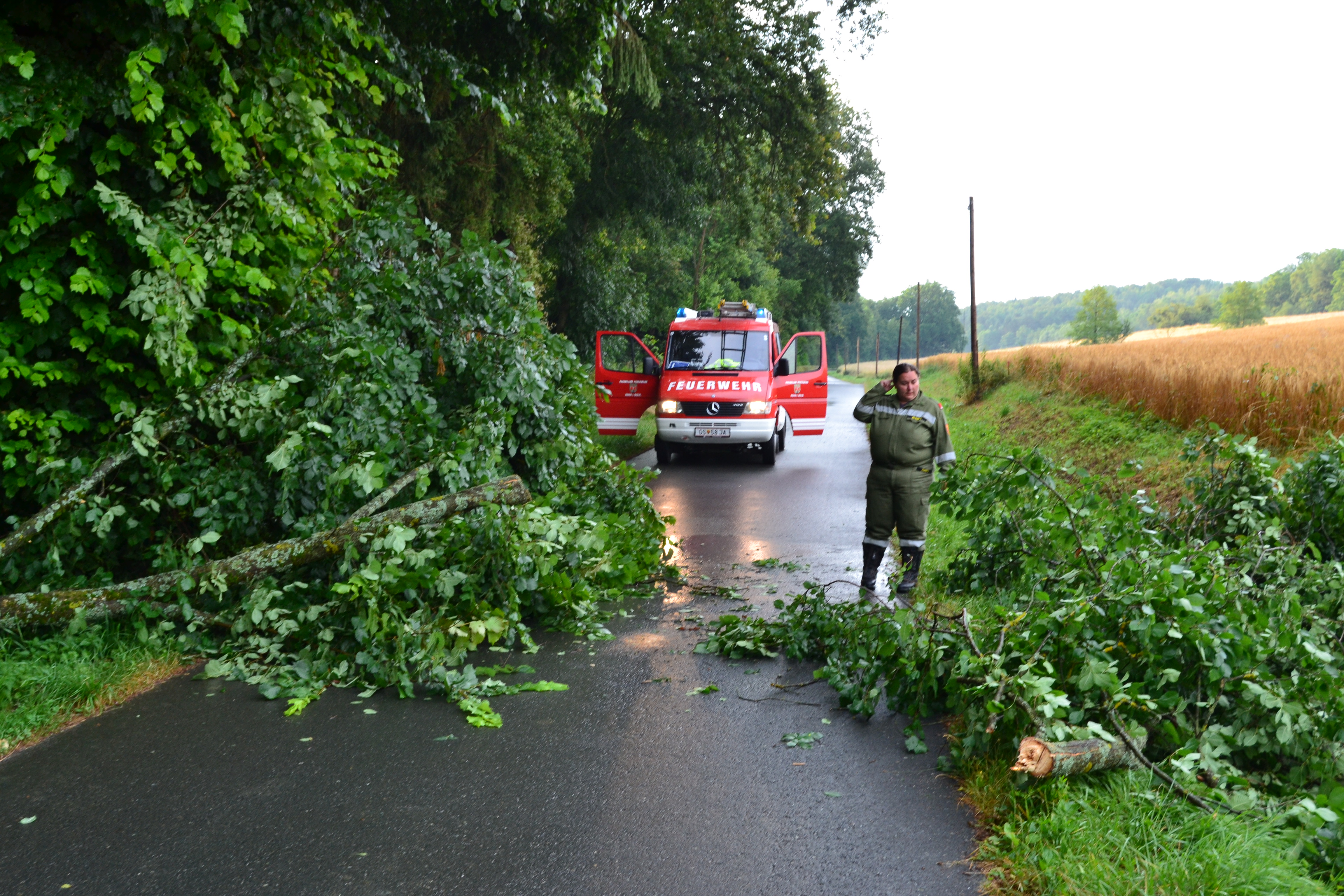 Auf der Gemeindestrasse Richtung Burgauberg stürzte in der Nacht auf den 24.06 ein Baum auf die Strasse. 3 Mann der FF-Rohr konnten ihn aber rasch beseitigen. Das dort verlaufende Postkabel wurde abgerissen.